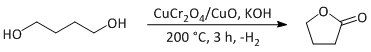 und erhält γ-Butyrolacton (GBL) in einer Ausbeute von 80% zusammen mit