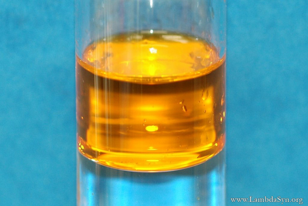 Man versetzt langsam unter Rühren die kalte Anilinhydrochlorid-Lösung mit der kalten Natriumnitrit-Lösung. Die Temperatur darf nie über 5 °C steigen, da sich sonst das Diazonium-Ion unter Stickstoff-Abspaltung zersetzt. Danach wird bei max. 10 °C die gebildete Diazonium-Lösung zur Naphthol-Lösung langsam unter Rühren zugesetzt. Die Reaktionsmischung muss dabei alkalisch sein; ansonst wird mit der Natronlauge leicht alkalisch gestellt. Nun rührt man noch ca. 5 Minuten und neutralisiert Reaktionsmischung mit Eisessig. Dabei fällt der rot-orange Farbstoff aus, wird abgesaugt und mit Wasser gewaschen. Auf diese Weise wurden 3.77 g Sudangelb hergestellt. Dies entspricht 76% der Theorie.